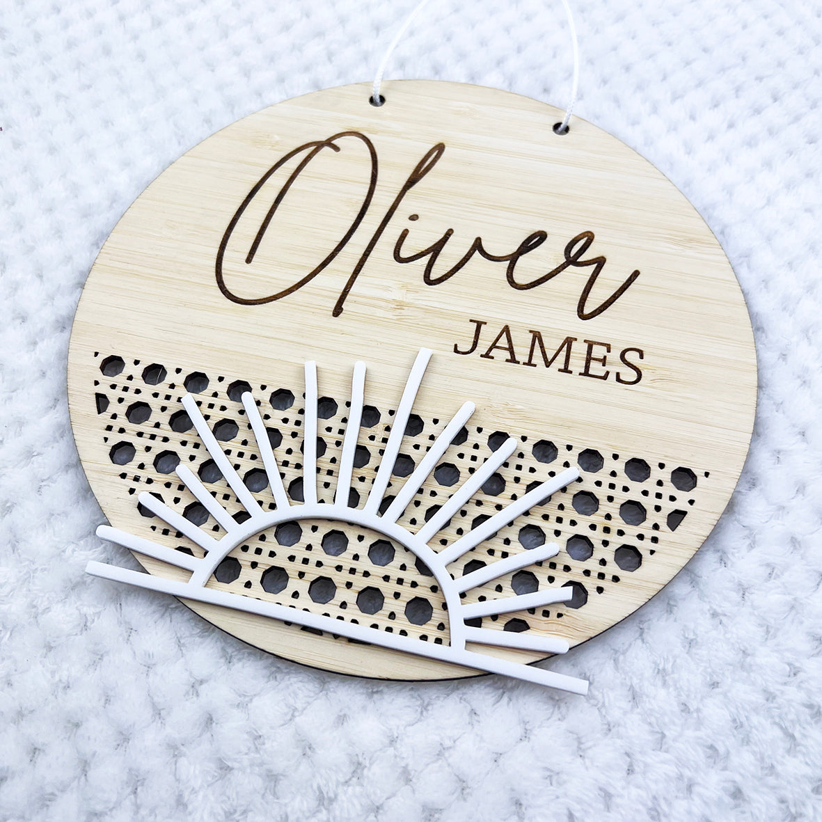 Bamboo (2 colour options) Round Rattan 3D Personalised Birth Print
