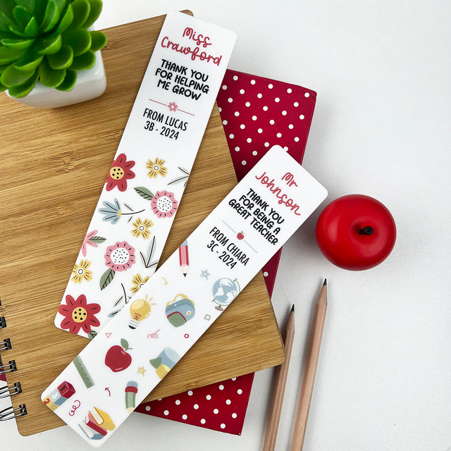 These bright and fun personalised bookmarks make a unique gift for book loving teachers or mentors! A great practical gift idea to say thank you.