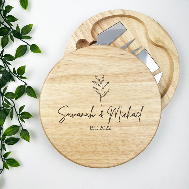 Olive Leaf Happy Couple Personalised Cheeseboard Set