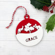 This gorgeous wooden ornament is made from acrylic and/or bamboo. The ornament measures 8cm in diameter and is 5mm thick in total. They also come with red and white twine so they are ready to hang!