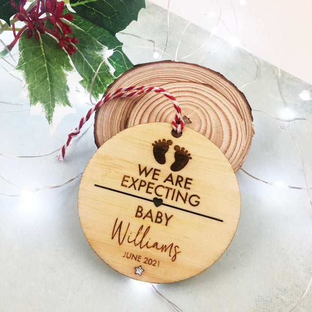 This unique 'We Are Expecting' ornament is the ultimate way to announce a pregnancy and to celebrate a new baby arriving in the new year.