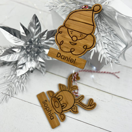 Santa & Rudolph Bamboo Name Ornaments (2 designs)