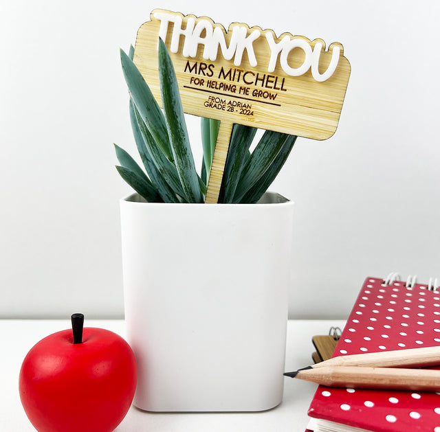 This 3D thank you planter stick makes a great statement with your personalised message, perfect for adding to a pot plant. It is also a lovely keepsake and makes a great teacher thank you gift idea.