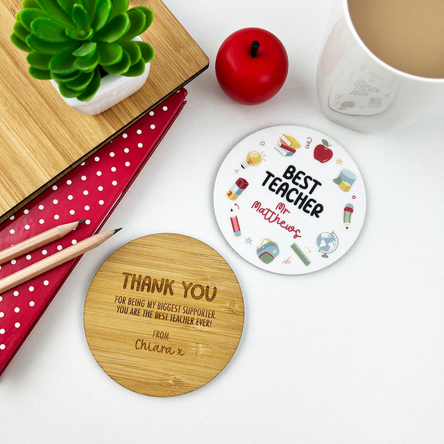 The perfect practical gift idea for your favourite teacher to say thank you! Personalise the front of this bright and fun design with the teacher's name, and personalise the back with the text of your choice.