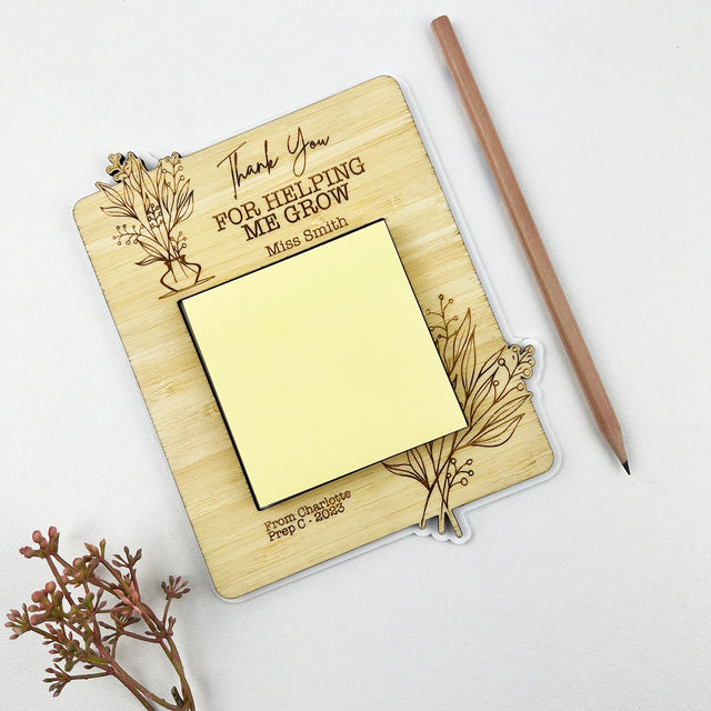 Our practical post it note holders are the perfect desk accessory for any teacher! Personalised with their name and a short phrase, as well as who it is from.